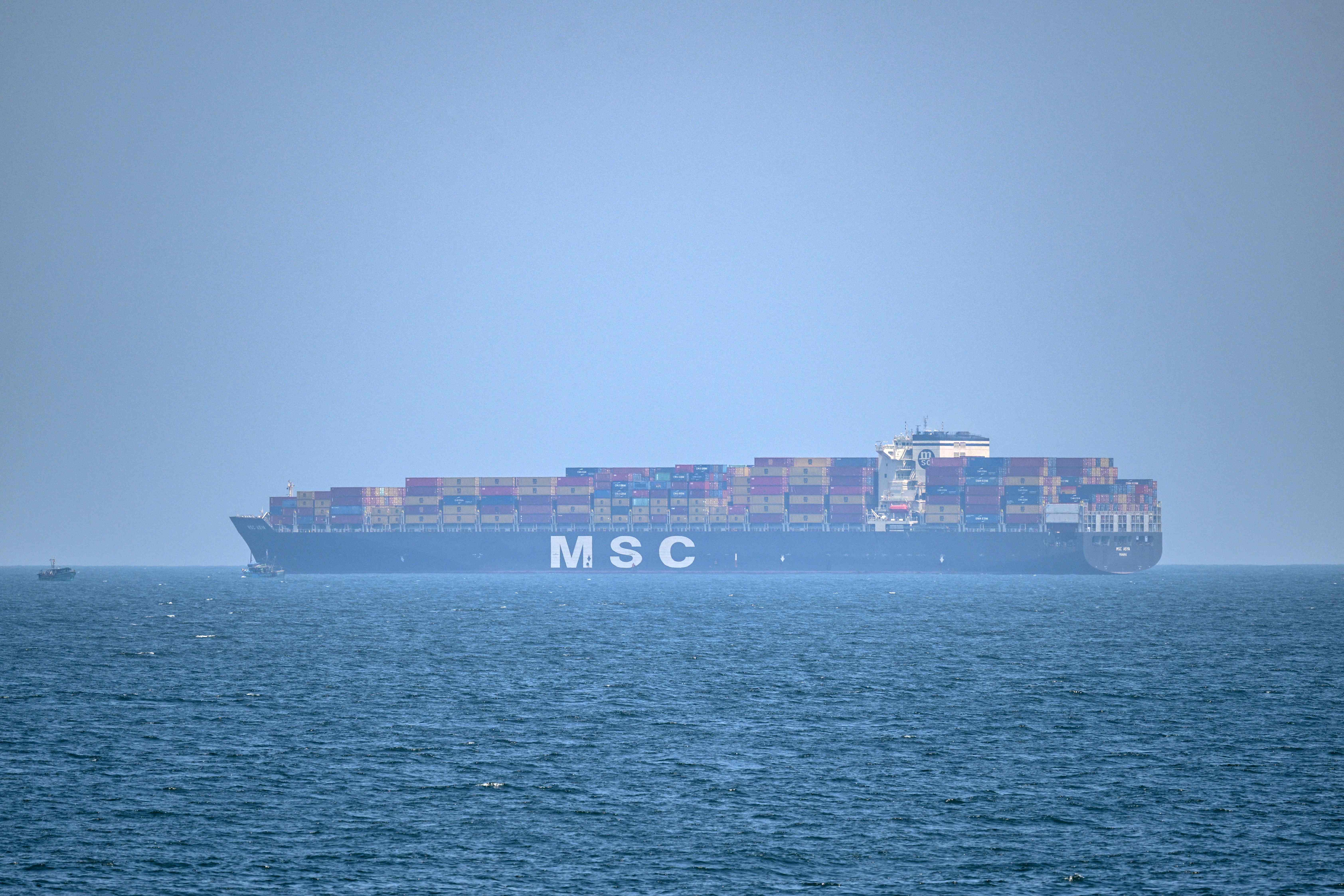 10月6日,一艘集装箱船行驶在印度泰米尔纳德邦金奈海岸外(法新社)